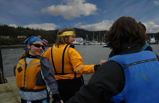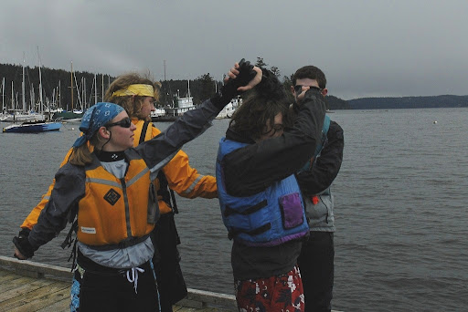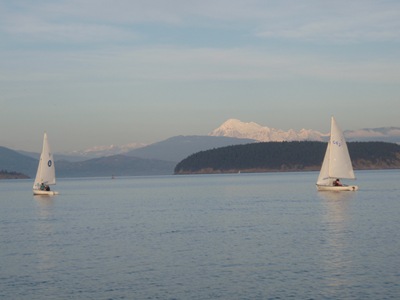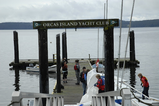This is the dock where we did the boat rotation. It's across the street from the Orcas Yacht Club, and was a great location for a regatta. This was actually only a half mile from where we were staying. Mrs. Brackett arranged for the girls to stay at the "beach house", which was a beautiful home on the water where the team bbq'd for dinner and hung out during the days. On Friday night we had lemon rosemary chicken, prepared by Mrs. Eslick. On Saturday night, Max made us fajitas, and they were good eats.