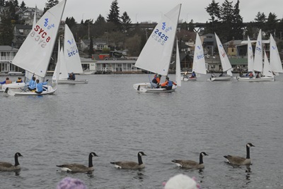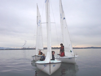 These are Vanguard 15's, they are very nice boats, supplied by Orcas, Friday Harbor, and North Kitsap. I think the kids enjoyed sailing them a lot more than our FJ's.